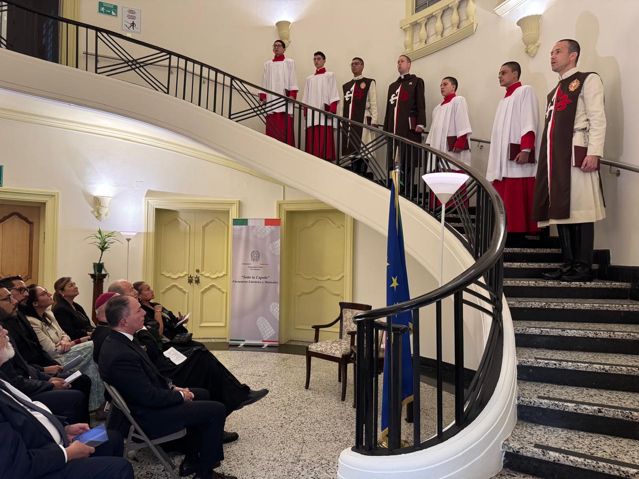 La «Semana de la lengua italiana en el mundo 2025» concluyó el 30 de octubre con la conferencia «Dante Alighieri y el exilio» de S.E. el Embajador Paolo Emanuele Rozo Sordini y los cantos gregorianos interpretados por los Heraldos del Evangelio de El Salvador, como parte de nuestra iniciativa «Sotto la Cupola».